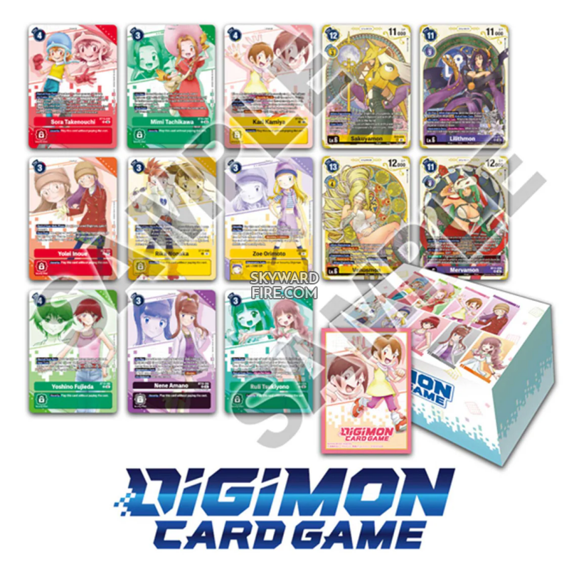 Premium Heroines Set. A Special set featuring the heroines in Digimon! Female Tamers and popular Digimon in the various Digimon anime series are the theme of this set featuring cards with new illustrations and specially designed goods!