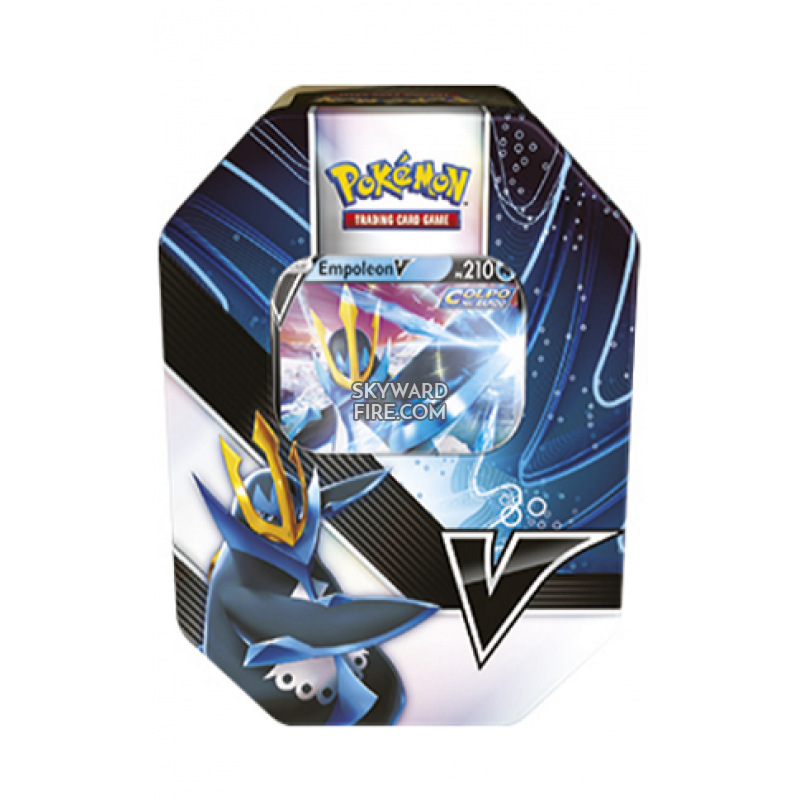 Strike hard or strike quickly with Battle Styles—and choose between the crushing power of Tyranitar V or the quick, icy moves of Empoleon V in the Pokémon Trading Card Game: V Strikers Tin. Each of these fantastic tins contains a super-powerful Pokémon V, with the necessary moves, strength, and skills to help you battle your way to victory in your next Pokémon match!