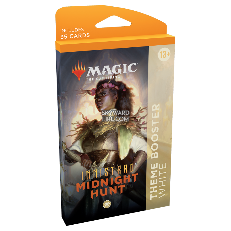 Already know your favorite Magic color? Have a deck you want more options for? Ready to dive head first into the return of double-faced Werewolf creatures? Theme Boosters answer all these questions. Each Innistrad: Midnight Hunt Theme Booster contains 1–2 rare or mythic rare cards and a combined total of 33–34 common and uncommon cards—plus 10% of Theme Boosters contain a Booster Fun variant!