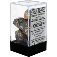 CHESSEX - Gemini Polyhedral 7 Dice Set - Copper Steel / White