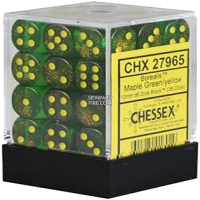 CHESSEX DICE: 12mm Set Of 36 Dice Block: Borealis Maple Green / Yellow