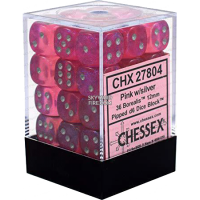 CHESSEX DICE: 12mm Set Of 36 Dice Block: Borealis Pink /Silver