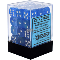 CHESSEX DICE: 12mm Set Of 36 Dice Block: Borealis Sky Blue / White