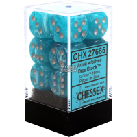 CHESSEX DICE: 16mm D6 Dice Block: Cirrus Aqua / Silver (12 DICE)