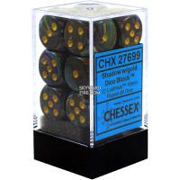 CHESSEX DICE: 16mm D6 Dice Block: Lustrous Shadow / Gold (12 DICE)