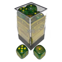 CHESSEX DICE: 16mm D6 Dice Block: Maple Green / Yellow (12 DICE)