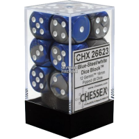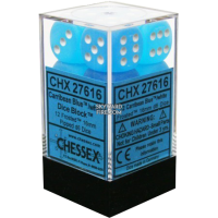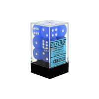 CHESSEX DICE: 16mm D6 Dice Block: Frosted Blue / White (12 DICE)
