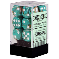 CHESSEX DICE: 16mm D6 Dice Block: Marble Oxi-Copper / White (12 DICE)