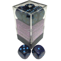 CHESSEX DICE: 16mm D6 Dice Block: Gemini Black-Blue / Gold (12 DICE)