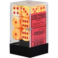 CHESSEX DICE: 16mm D6 Dice Block: Festive Sunburst / Red (12 DICE)