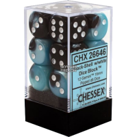 CHESSEX DICE: 16mm D6 Dice Block: Gemini Black-Shell / White (12 DICE)
