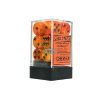 CHESSEX DICE: 16mm D6 Dice Block: Vortex Orange / Black (12 DICE)