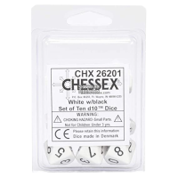 CHESSEX: White / Black Set Of Ten D10 DICE
