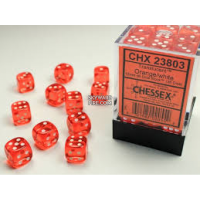 CHESSEX - Translucent 12mm D6 Dice Block - Orange w/ White