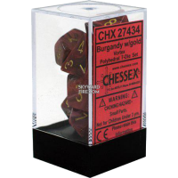 CHESSEX DICE: Polyhedral Set Of 7 Dice Block: Vortex Burgundy / Gold