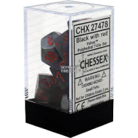 CHESSEX DICE: Polyhedral Set Of 7 Dice Block: Velvet Black / Red