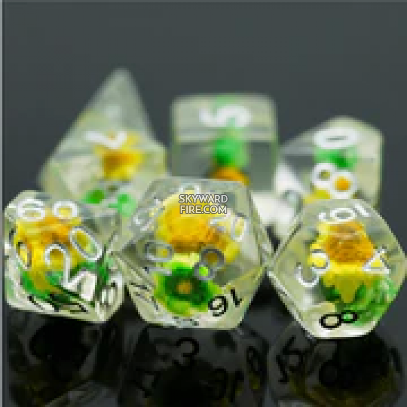 Green & Yellow Star Flower RPG Dice Set
