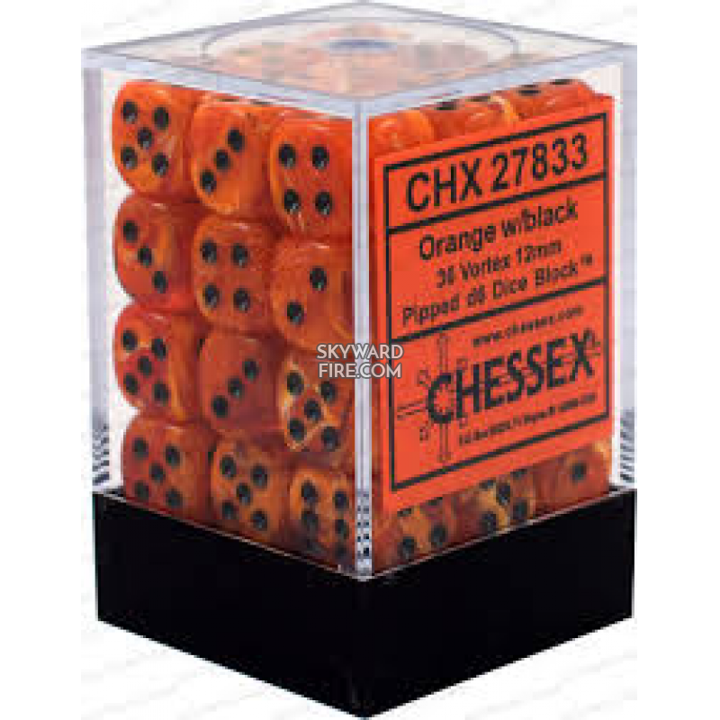 Vortex Orange / Black (12mm Set Of 36 Dice Block) CHESSEX DICE
