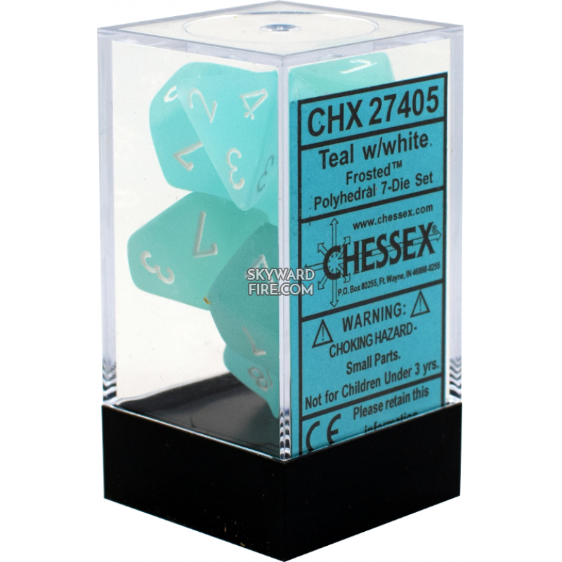 Polyhedral Dice Block: Frosted Teal / White (7 DICE) CHESSEX DICE