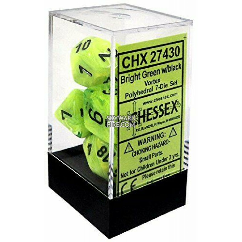 Polyhedral Dice Block: Vortex Bright Green / Black (7 DICE) CHESSEX DICE