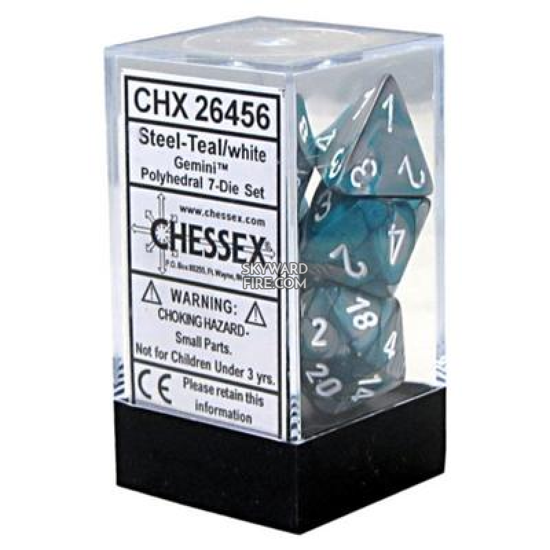 Polyhedral Dice Block: Gemini Steel-Teal / White (7 DICE) CHESSEX DICE