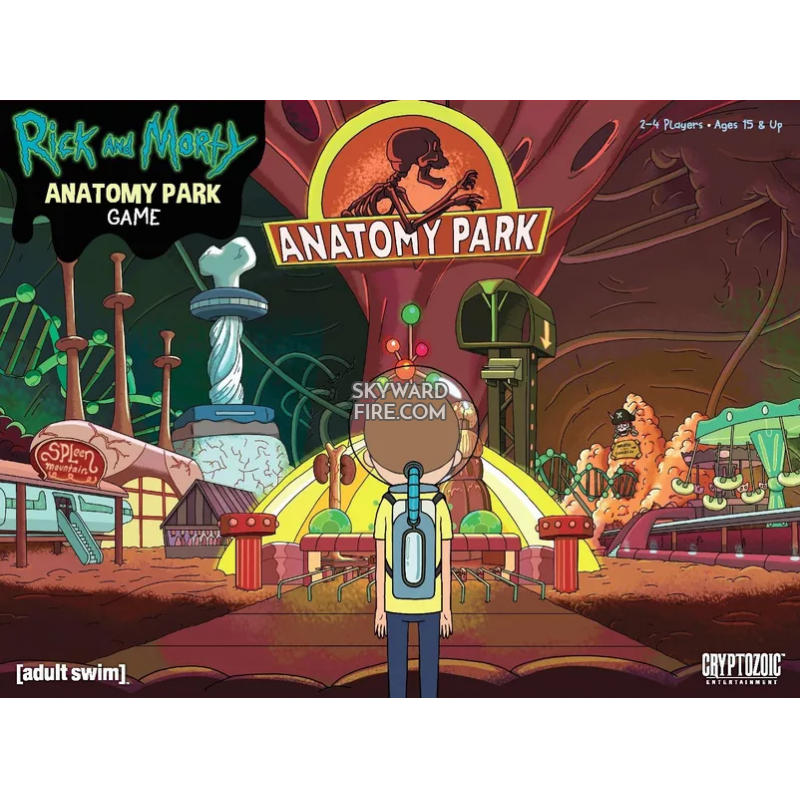 Based on the hilarious "Anatomy Park" episode, each player in Rick and Morty: Anatomy Park attempts to construct the world's greatest theme park inside of a homeless guy named Ruben. Players build while battling both monstrous diseases and fellow park-builders with creative differences concerning how the park should be laid out. The object of the game is to score points by placing your park tiles into the best spots within the body. Move your character pawn around the park to scout out the best locations and stay away from (or shoot) the monster diseases that will pop up and cause chaos. Whoever has the most victory points wins and is the master builder of Anatomy Park!