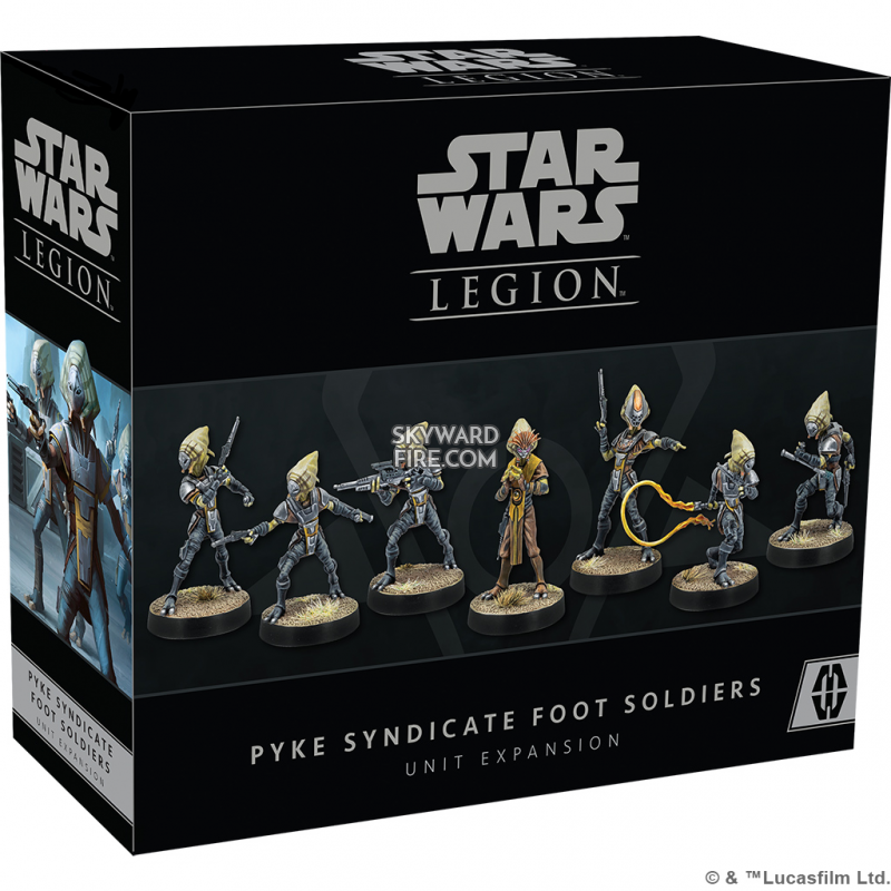 Players can hire additional soldiers to protect their interests throughout the galaxy with this pack for Star Wars: Legion! Adding a corps unit of six Pyke Syndicate Foot Soldiers that can join Rebel, Imperial, Republic, or Separatist armies or band together with their fellow mercenaries in the Shadow Collective, this expansion gives players even more versatile options for building their forces.