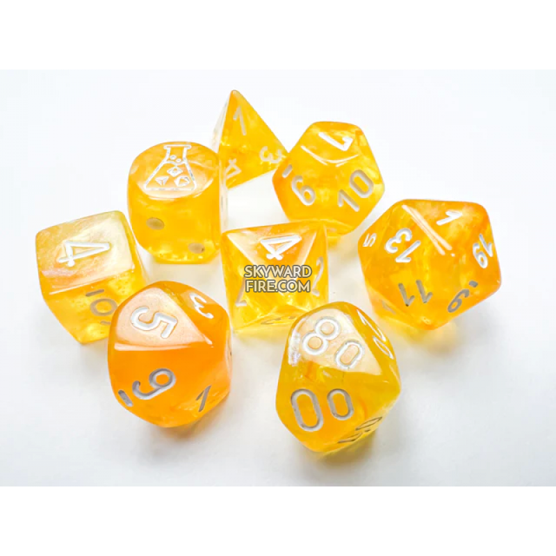 CHESSEX - Borealis Polyhedral 7 Dice Set - Luminary Canary / White (with bonus die)