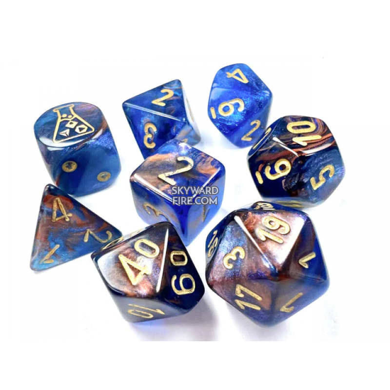 Lustrous Polyhedral Azurite/gold Luminary™ 7-Die Set (with bonus die)