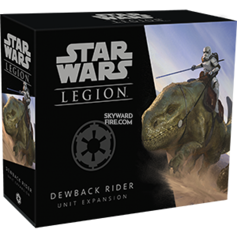 Within this expansion, you’ll find an unpainted, beautifully-detailed Dewback miniature featuring a Sandtrooper rider with four distinct customization options: your Dewback Rider can be built carrying their standard shock prod, or you can equip them with three different weapons. On top of the ability to customize the look of your Dewback Rider, this Unit Expansion gives you plenty of ways to tweak how this unit operates in the thick of battle. Six upgrade cards accompany the miniature, letting you modify its armament, training, or the comms systems it carries into battle. Rounding out this expansion are a unit card and all the tokens you need to deploy it as a support unit for your Imperial armies.