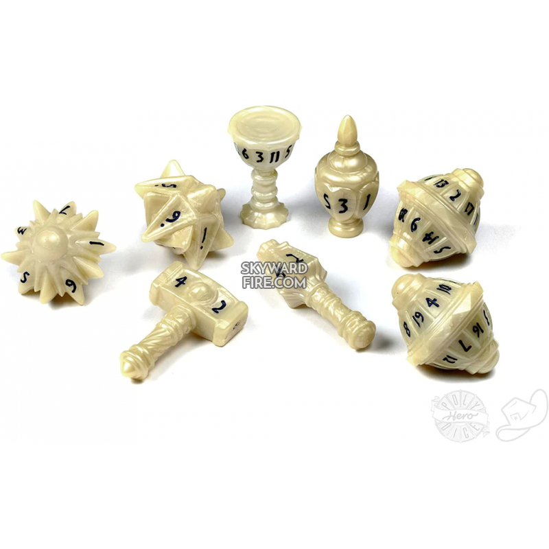 PolyHero Dice: Cleric 8 Dice Set Celestial Ivory