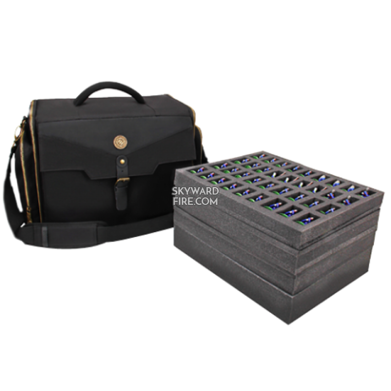 Protect, store, and organize your collection of war game miniature figures. Designed to store up to 108 infantry units (up to 28mm) and a number of larger figures, you can bring your army to your next gaming event with ease. A handy book sleeve on the front can be used to store rulebooks & references for army set up. The reinforced padded walls protect your miniatures from drops, impacts, and scratches.