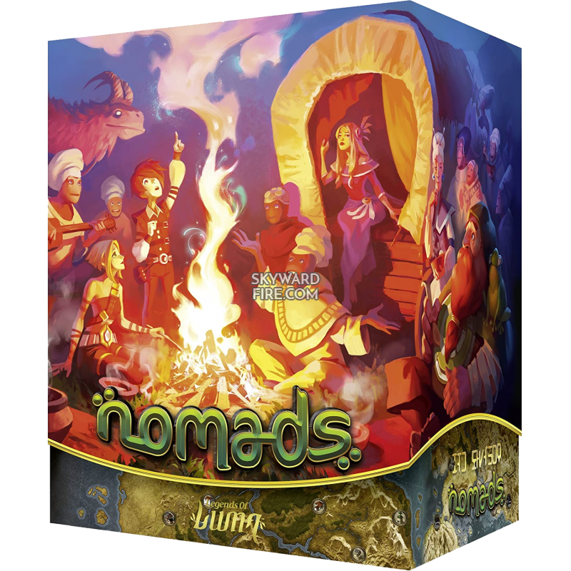 In the dreamlike board game Nomads, players each collect disjointed pieces of stories. As you gather the story tiles, you can exchange them for a song or legend that makes sense of the seemingly random fragments. In the end, the player with the most points gleaned from song and legend cards and opal moon tiles — and with the fewest leftover story or joker tiles — wins!
