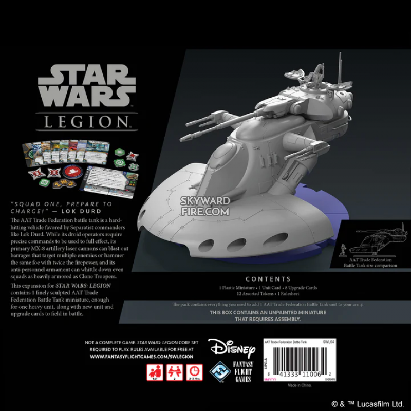The AAT Trade Federation battle tank is a hard-hitting vehicle favored by Separatist commanders like Lok Durd. While its droid operators require precise commands to be used to full effect, is primary MX-8 artillery laser cannons can blast out barrages that target multiple enemies or hammer the same foe with twice the firepower, and its anti-personnel armament can whittle down even squads as heavily armored as Clone Troopers.