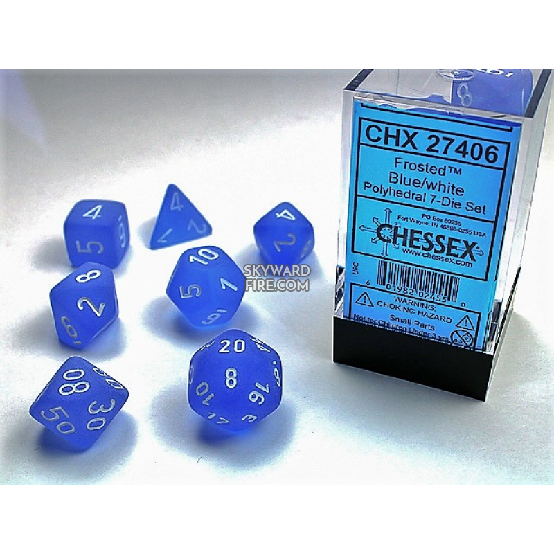 CHESSEX - Frosted Polyhedral 7 Dice Set - Blue / White