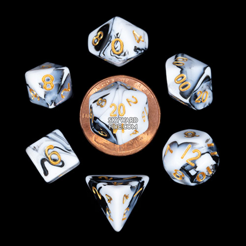 Fanroll - 10mm Mini Polyhedral Dice set - Marble w/ Gold Numbers