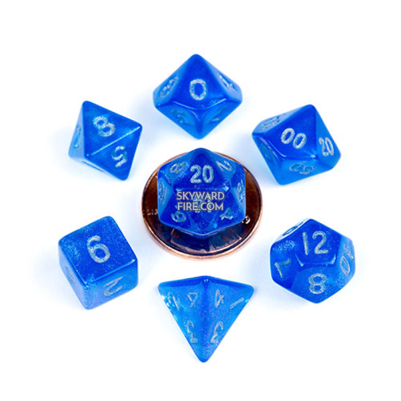 Fanroll - 10mm Mini Polyhedral Dice set - Stardust Blue w/ Silver Numbers
