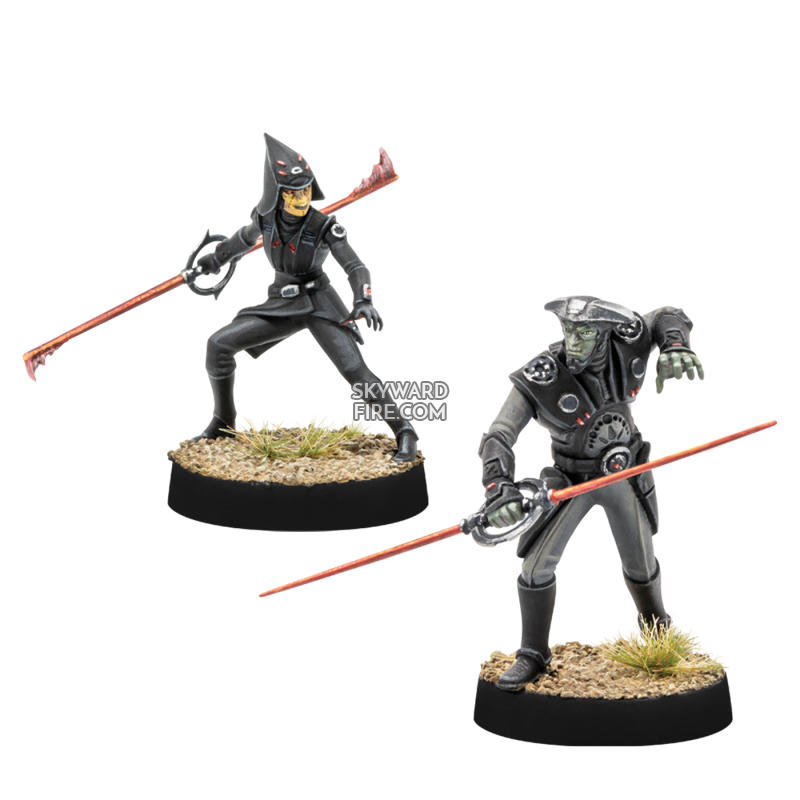 Two terrifying Inquistors are on the hunt in this new pack for Star Wars™: Legion! Tasked with hunting down Jedi who survived Order 66, the Fifth Brother and Seventh Sister are deadly Imperial Operatives who bolster Imperial armies with even more Force users. In addition to their innate Force abilities and lightsaber skills, this pack also includes a new Training upgrade card and 5 command cards that further enhance their Jedi-hunting abilities.