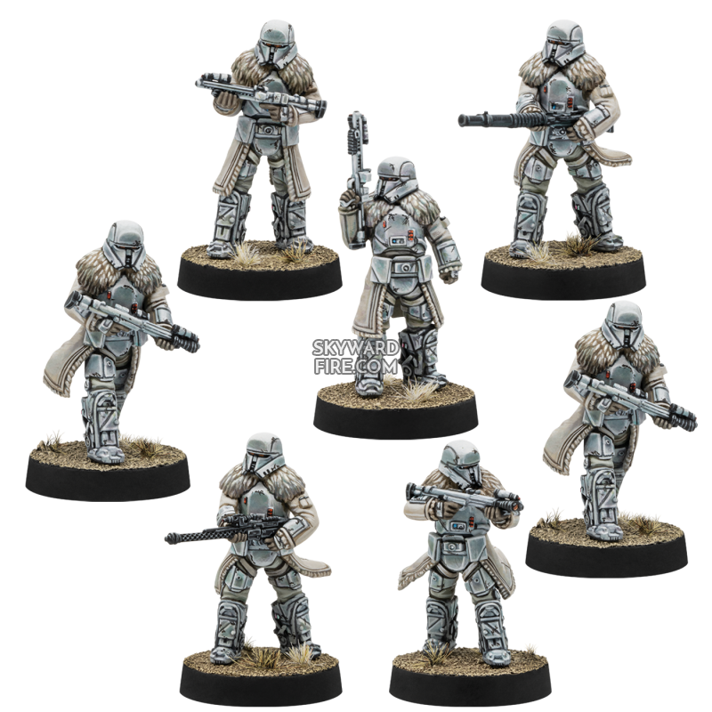 Fearsome Imperial Range Troopers arrive in Star Wars™: Legion in this new pack! The seven Range Trooper miniatures in this pack give players a durable new Imperial Support option that can stride into the thick of battle while unleashing their powerful E-10R Blaster Rifles. These miniatures are joined by a heavy weapon miniature that further accentuates the unit’s potent firepower. Able to easily traverse difficult terrain, the Range Troopers are accompanied by six Upgrade Cards that invite players to augment them to fit their own strategy.