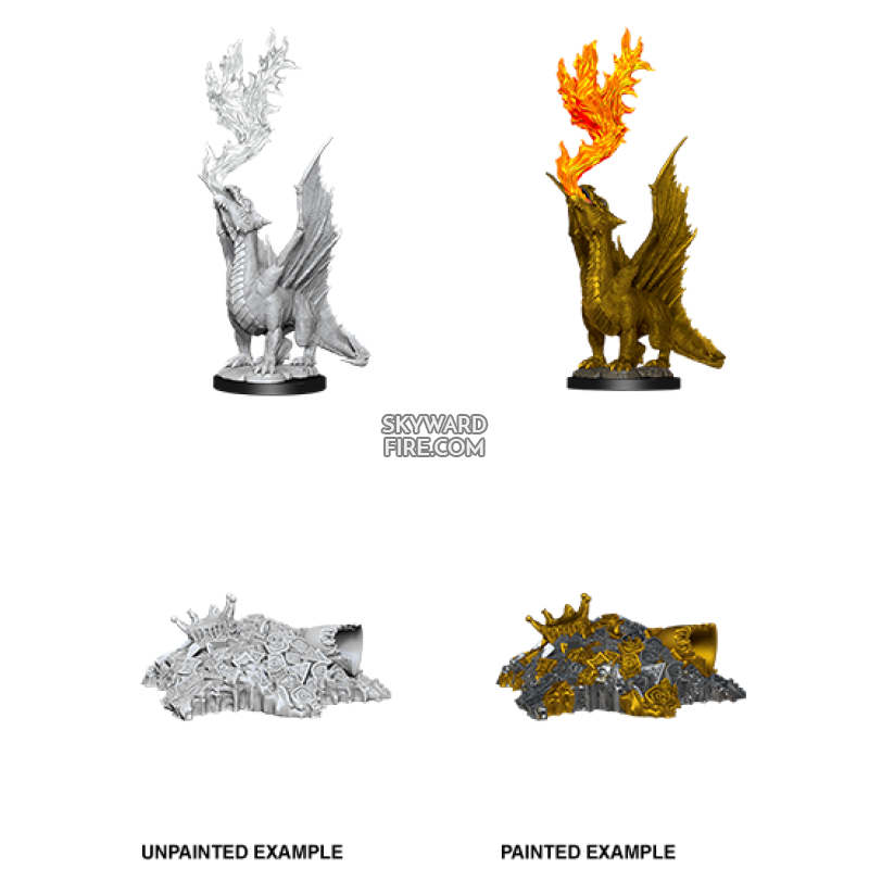 Gold Dragon Wyrmling & Small Treasure Pile - miniatures - Nolzur's