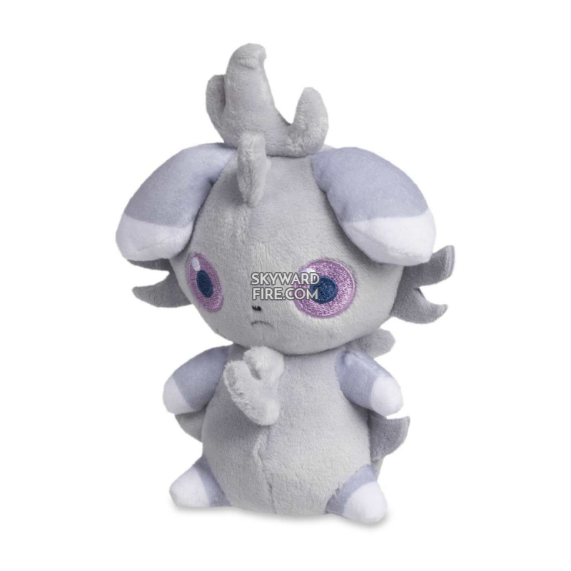 The Espurr Sitting Cuties Plush is weighted with microbeads, so it sits up when you put it on a flat surface. This palm-sized plush is a fun, charming way to show off a favorite Psychic-type Pokémon originally discovered in Kalos!