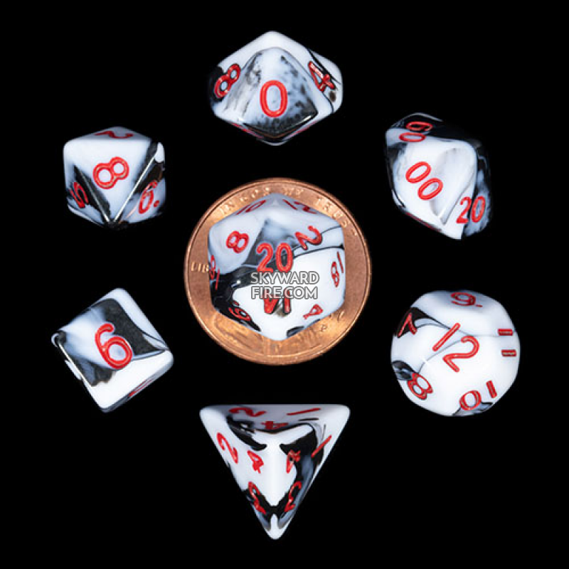 Fanroll - 10mm Mini Polyhedral Dice set - Marble w/ Red Numbers