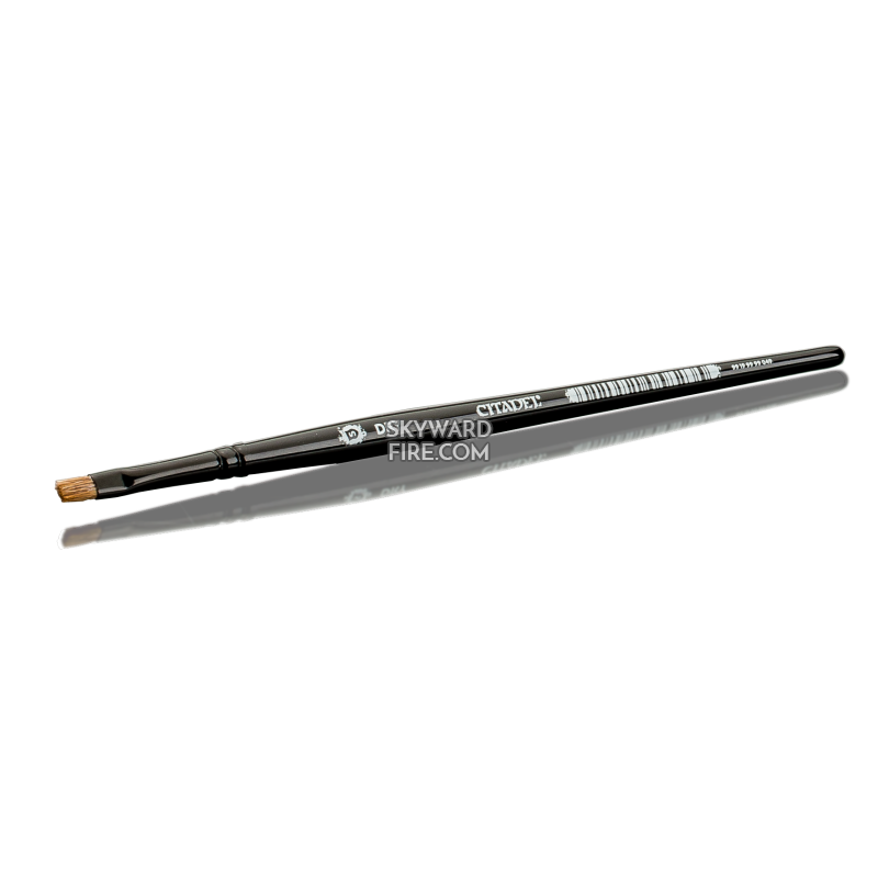 Features a light ox hair and synthetic blend of bristles for stiffness and durability. The flat profile means a consistent coverage on raised areas - ideal for drybrushing!