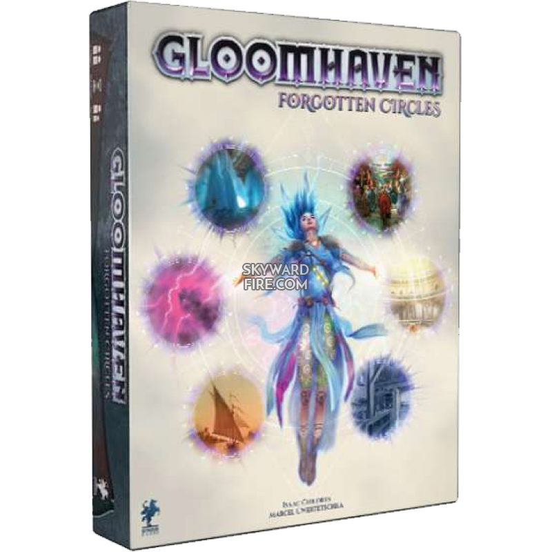 Gloomhaven: Forgotten Circles, the first expansion for Gloomhaven, features twenty new scenarios that take place after the events of the original Gloomhaven campaign and involve one new character class — the Aesther Diviner — and her attempts to prevent an approaching calamity. The accompanying scenario book breaks these scenarios up across multiple pages to create more dynamic and surprising encounters.