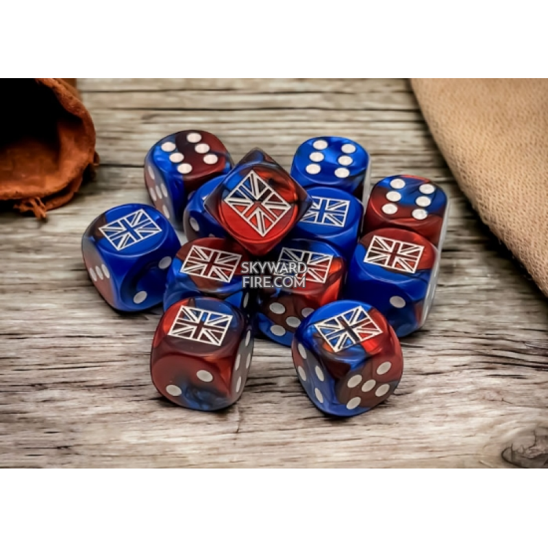 CHESSEX - Gemini WW2 16mm D6 Dice Block - United Kingdom Blue-Red/White (12 Dice)