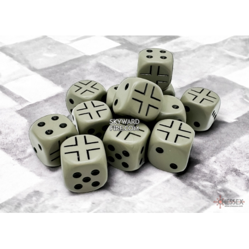 CHESSEX - Opaque WW2 16mm D6 Dice Block - Germany Dark Grey/Black (12 Dice)