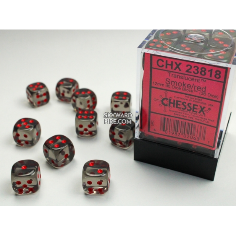 CHESSEX - Translucent 12mm D6 Dice Block - Smoke/Red