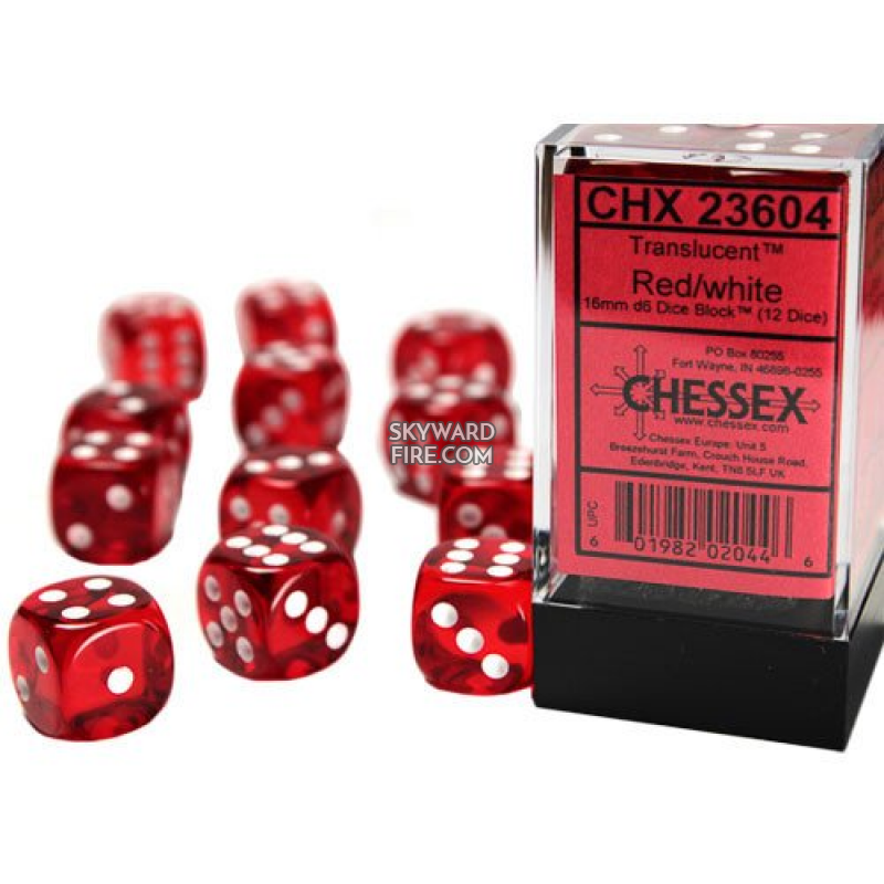 CHESSEX - Translucent 16mm D6 Dice Block - Red w/ White