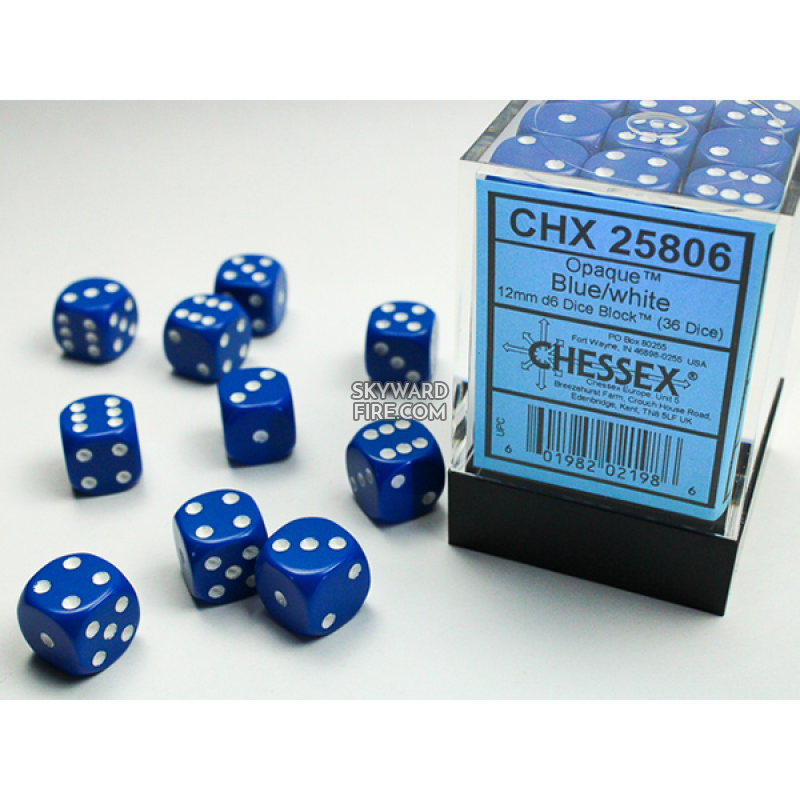 Chessex - Opaque 12mm D6 Dice Block - Blue w/White