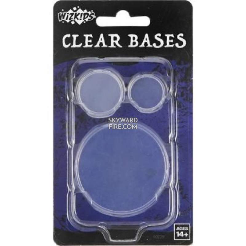 Featuring an assortment of diameters to cover the most common miniature sizes, WizKids Clear Bases allow miniature crafters of all skill levels the ability to customize their figures even further. WizKids Clear Bases have low profiles for accurate miniature height and are designed to attach to the bottom of the mini's terrain. Clear Bases allow players to see underlying terrain at a glance for an optimal gameplay experience. Each pack comes with the following bases: 3x20mm clear bases, 6x25mm clear bases, 3x50mm clear bases.